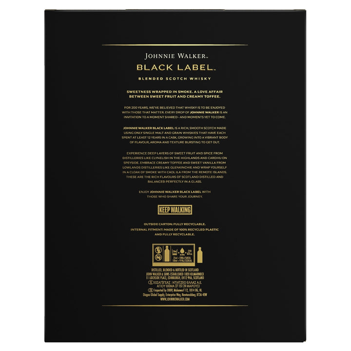 What's better than a little Johnnie Walker Black Label? A little Johnnie Walker Black Label in a limited-edition "Keep Walking" highball glass with the signature "walking man".