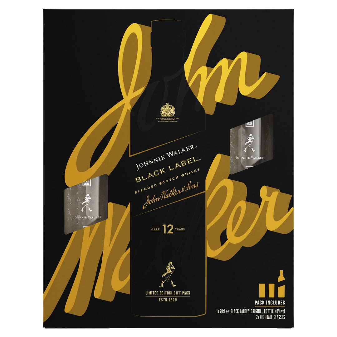 Johnnie Walker Black Label Scotch Whisky Glass Gift Pack (700mL)