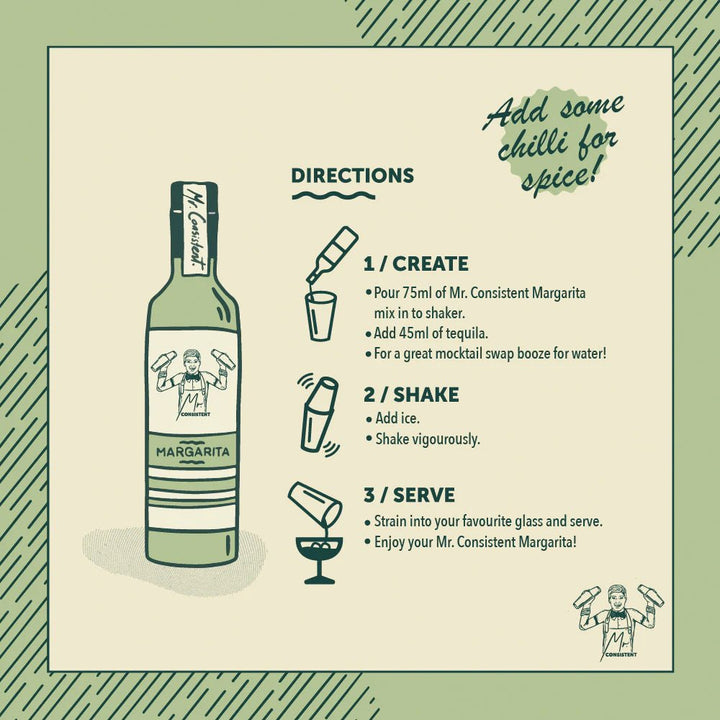 Mr. Consistent’s Margarita Mixer makes it easy to whip up the refreshing Mexican cocktail specialty that's a worldwide favourite. Mr. Consistent mixers crafted with the freshest ingredients and handmade with love - just add booze, shake, and serve with your own flair.