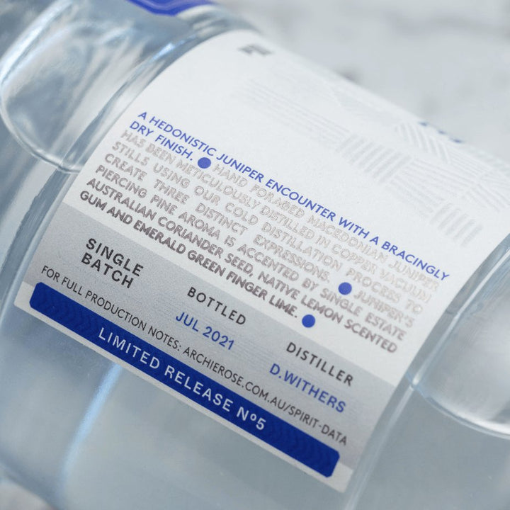 To draw out a multitude of diverse flavours from our Macedonian juniper, this hand foraged ingredient was both cold and hot distilled to create three distinct expressions. Joined by a supporting cast of single estate Australian coriander seed, Tahitian lime and lemon scented gum, the resulting spirit offers a supple start on the palate that makes way for a bold balance of citrus and herbaceous intensity that dovetails to a profoundly pine-laden dry finish.