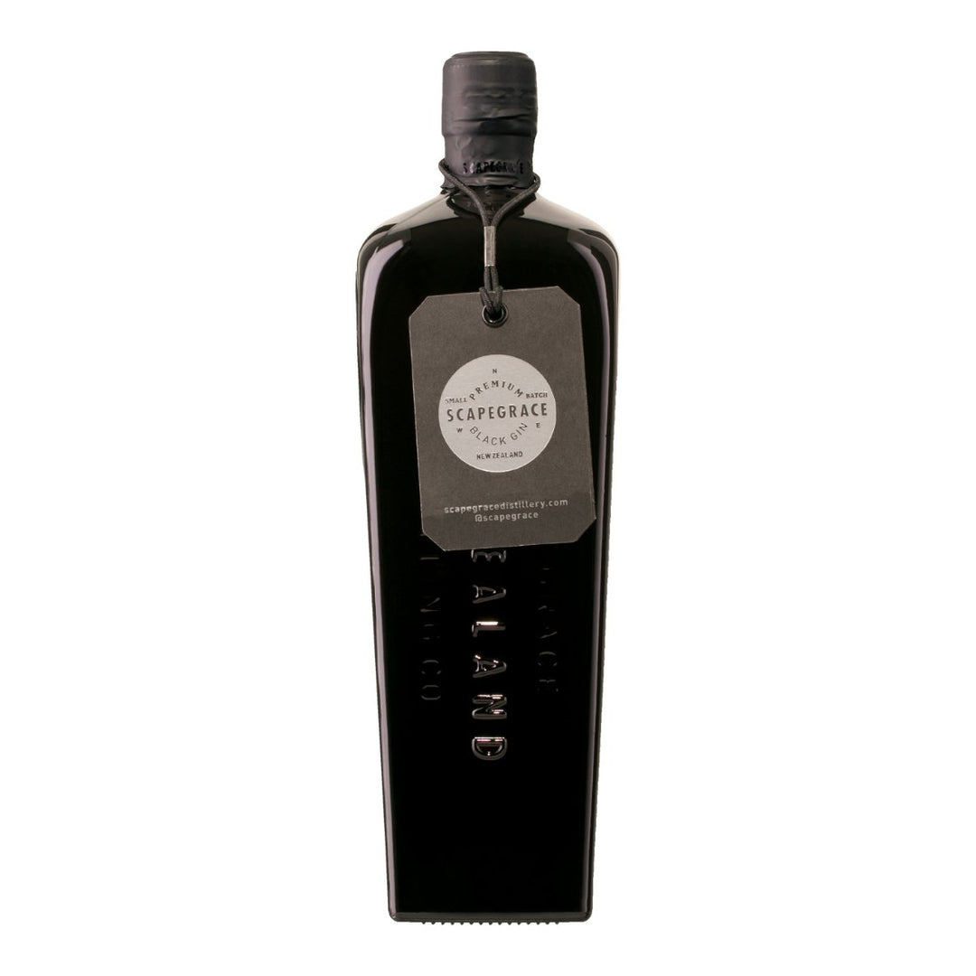 Scapegrace Black Gin is crafted in New Zealand by the Scapegrace Distillery.