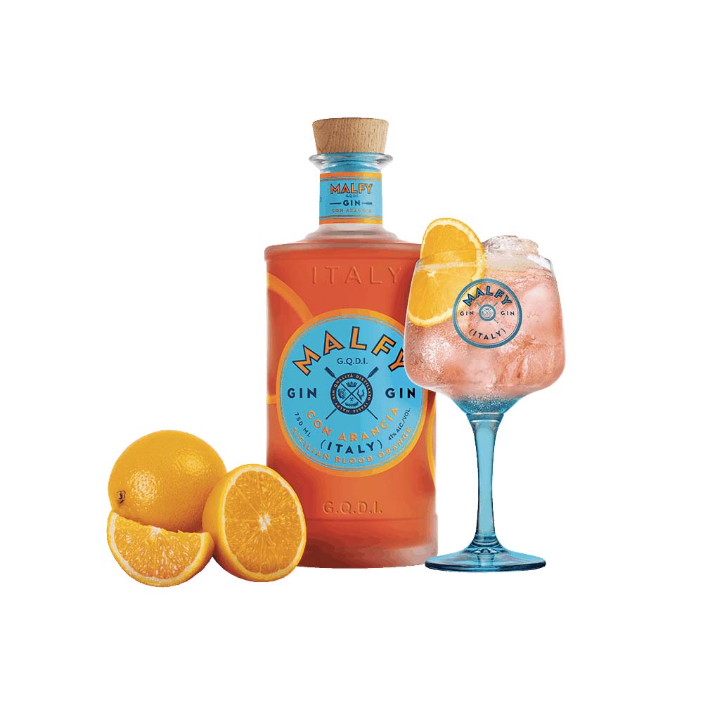 Malfy Con Arancia Gin is distilled in Italy with some of the finest botanicals including handpicked juniper, Italian oranges and a selection of flavourful Sicilian blood oranges.​