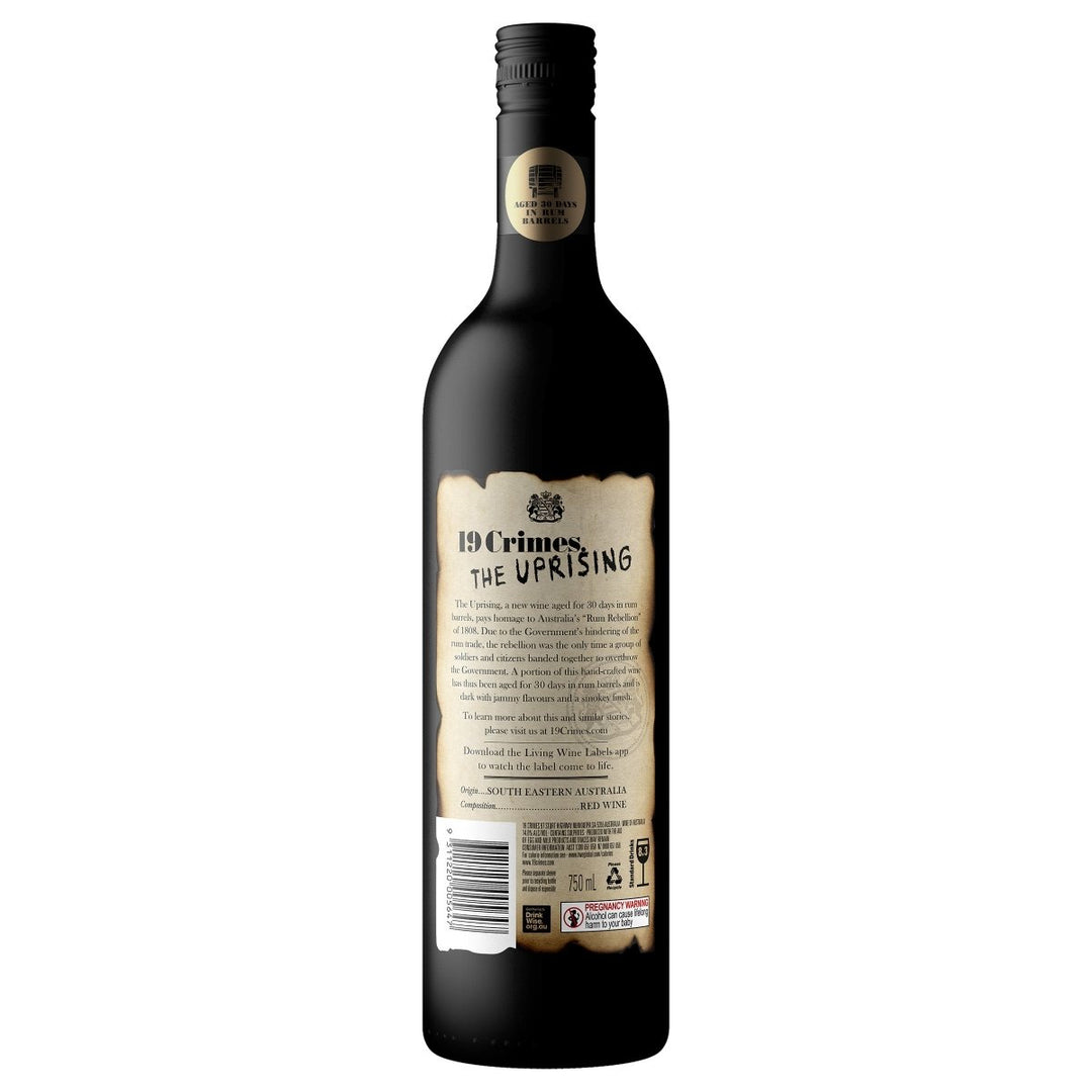 19 Crimes The Uprising Red Wine has been aged for 30 days in rum barrels, leaving it dark with jammy flavours and a smokey finish.