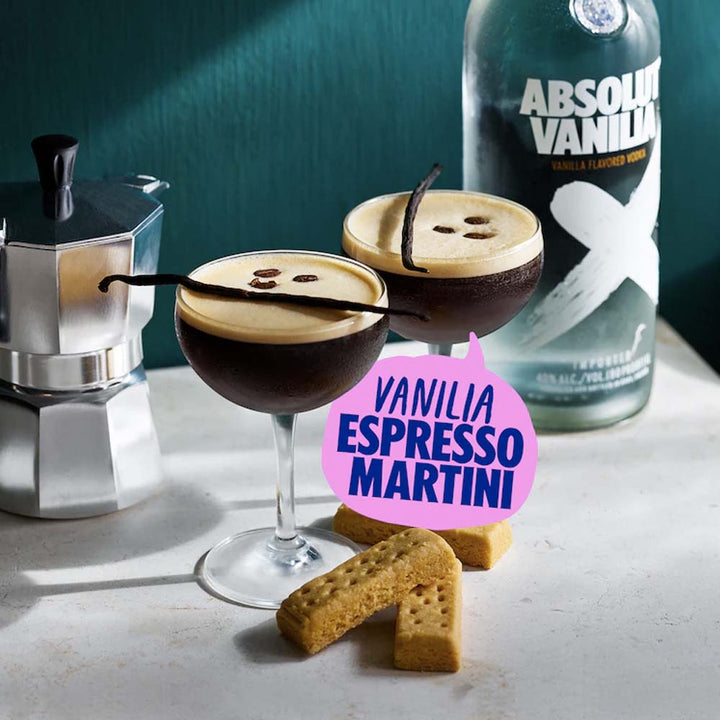 Smooth and creamy, Absolut Vanilia is perfect for espresso martinis! Also great in a shot, or if you love vanilla Coke mix it for a spiked version.