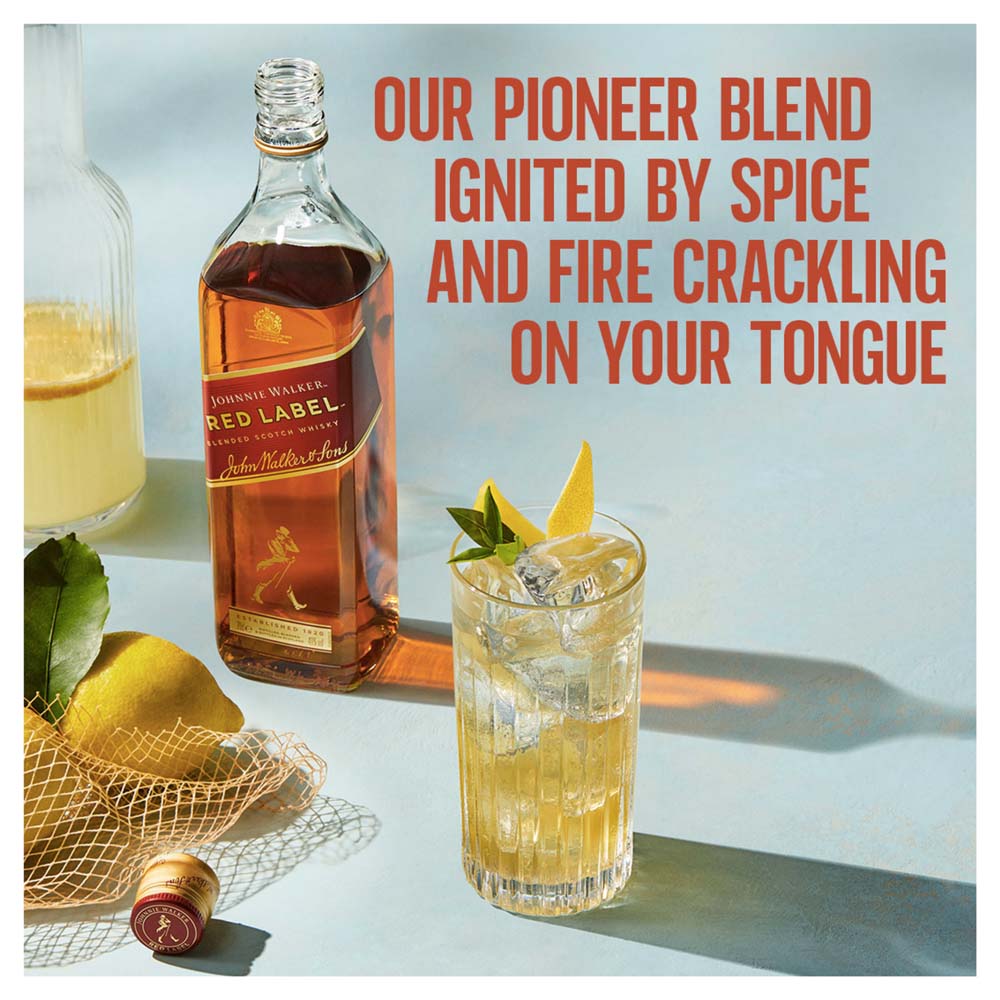 Johnnie Walker Red Label is their Pioneer Blend, the one that has introduced the whisky to the world. Highly versatile and with universal appeal, it has a bold, characterful flavour that shines through even when mixed.